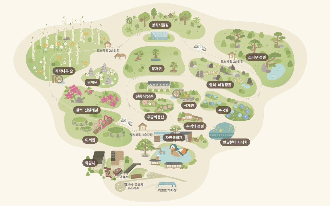 이끼원을 보신다음 자작나무숲을 보시고 분재원 소나무정원 순으로 가시면 예쁘게 보실 수 있을겁니다!!
