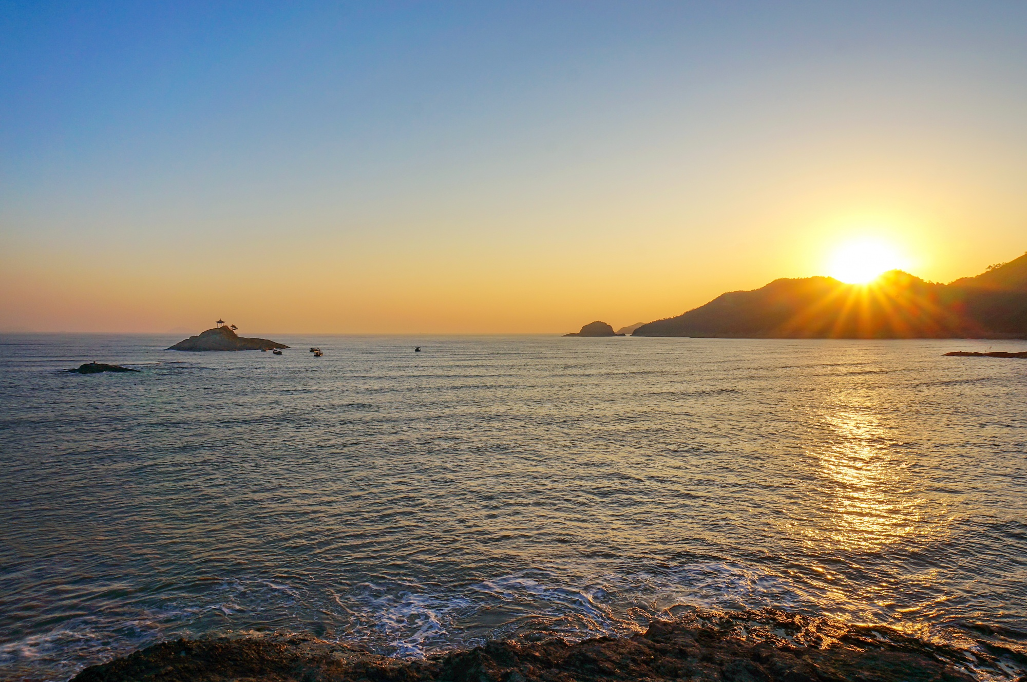 동해처럼 바다 수평선 위에서 해가 바로 떠오르지는 않지만,